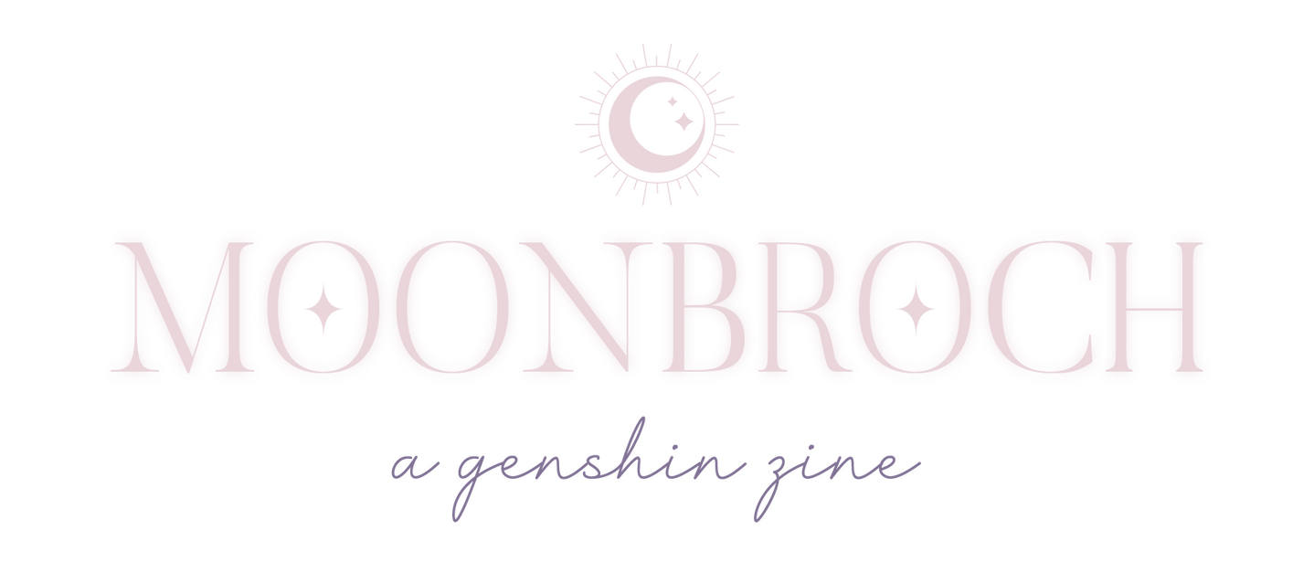 Moonbroch: a halo or corona around the moon, caused by the refraction of moonlight in ice crystals or nearby clouds.From glowing crystalflies fluttering around Windrise to the endless expanse of stars above, Teyvat’s nighttime is filled with wonder and magic. Moonbroch is a fanmade Genshin Impact zine themed around darkness and illumination. Not exclusive to nighttime scenes alone, this project aims to include as many locations as the contributors would like, such as the giant mushroom in the Chasm, Starglow Cavern, or Enkanomiya!Contributor applications are closed.
